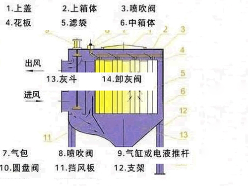 凈氣室主要是固定袋籠、濾袋及氣路元件之用,制成全密閉形式。清灰時(shí),壓縮空氣首_入凈氣室,在沖入各濾袋內(nèi)部。頂部設(shè)有入孔檢修門,安裝和更換袋籠、濾袋。凈氣室內(nèi)又分為若干個室,相互之間用內(nèi)墻隔開,每室均設(shè)有提升閥,用以切換過濾氣流,凈氣室的強(qiáng)度應(yīng)能承受系統(tǒng)壓力。